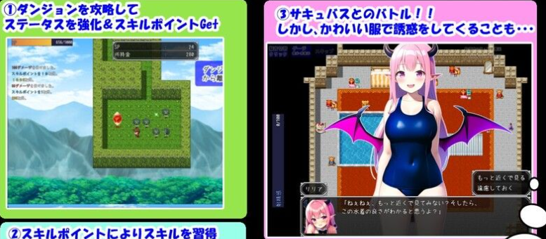 游戏介绍: 与可爱的魅魔一起进行的顽皮的战斗角色扮演游戏! 一个大部分男人都被魅魔袭击而毁灭的王国。 最后,连国王也在英雄面前被魅魔杀死。 为了给国王报仇,英雄决定与魅魔作战。 躲避魅魔顽皮的攻击,争取胜利! 战斗很性感,赢了也很性感,输了也很性感! 战斗胜利后,就和魅魔一起生活了!? 你会也有梦想的魅魔后宫!