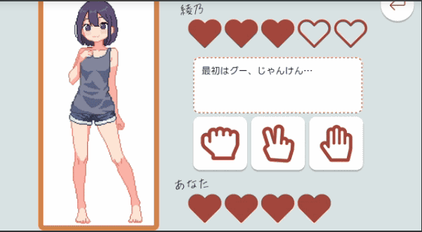 在这个游戏中,石头剪刀布游戏前后的故事部分讲述了你和绫乃之间的不太浪漫的关系的故事。