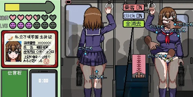 壹款隨機生成各種不同女孩的JK電車吃漢騷擾互動 SLG!
