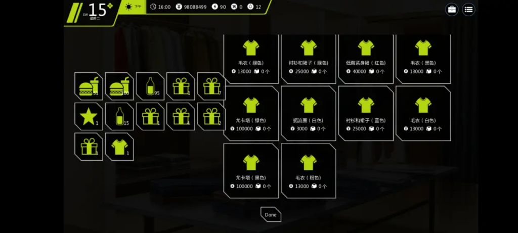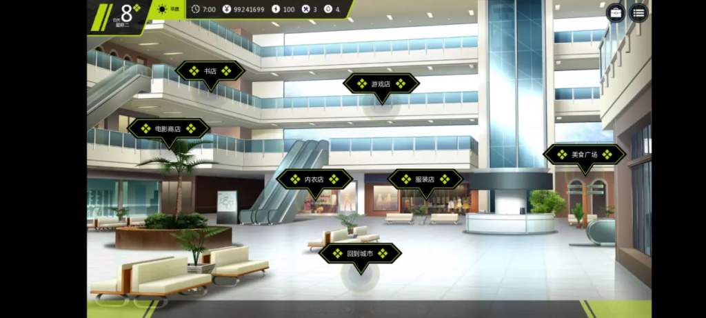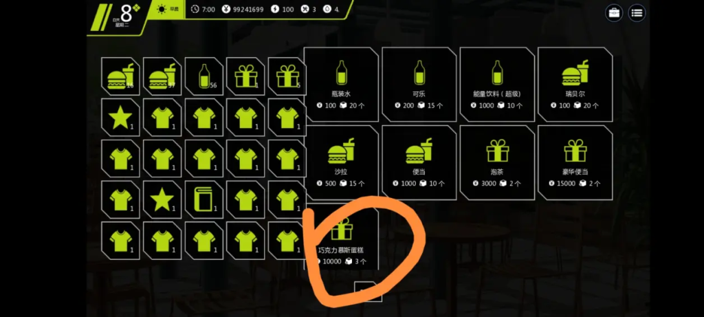 没错这就是冬香心心念念的巧克力蛋糕专卖店。商城里我的建议是服装店买爆,电影和游戏除了那几个XX包以外买爆,游戏店有个关键道具就是电脑,书店可有可无,内衣店先别碰,占格子又送不出去