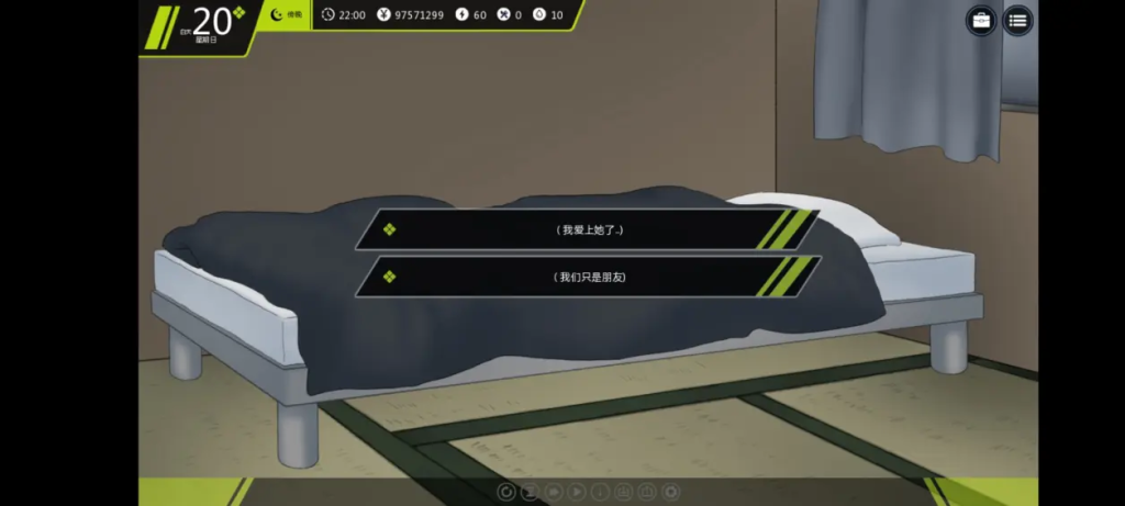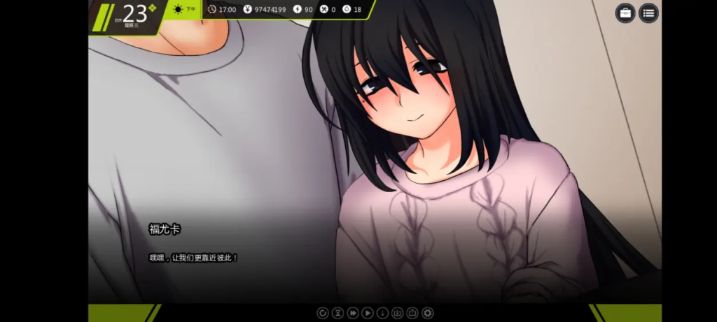 3.玩一个小时格斗游戏,选择放水,好感能加不少,到22点洗澡睡觉10个小时