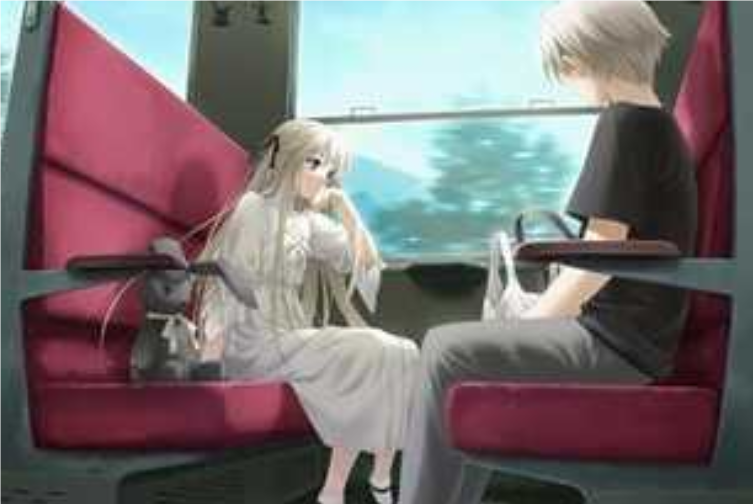 那样的悠,受到了曾经一同玩耍的邻家大姐姐・依媛 奈緒(よりひめ なお)、刚转校便结识了的中里 亮平(なかざと りょうへい)、神社的巫女兼管理人天女目 瑛(あまつめ あきら)、以及她的朋友渚 一葉(みぎわ かずは)等人的热情欢迎。同儿时的印象几乎没有变化的村镇和人们。